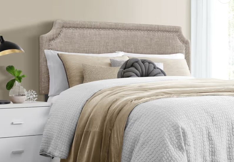 Elevate your décor—and your sleep—with the simple elegance of the Sleepy’s Harper Headboard, a French countryside inspired headboard. Padded for a timeless look and comfort, silver nail head finishing adds style and a refined appearance to what will become the centerpiece of your bedroom. Constructed with a durable, hardwood frame, this headboard is a breeze to assemble and install.